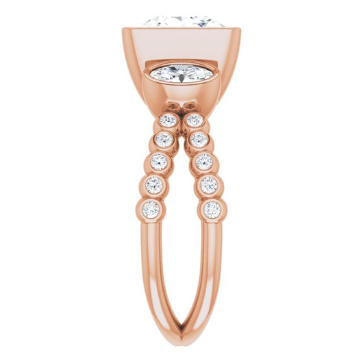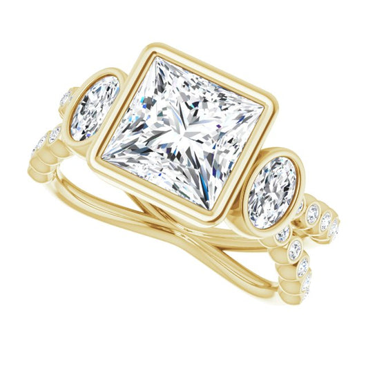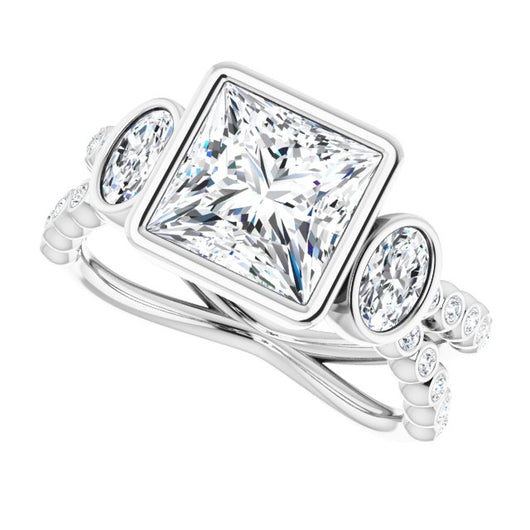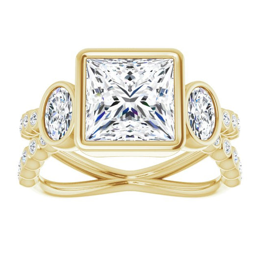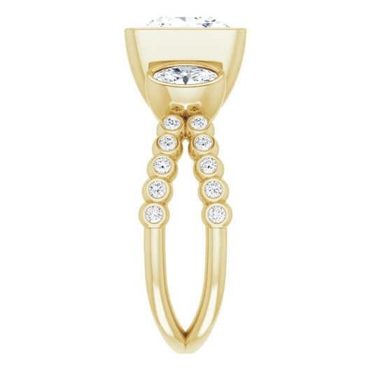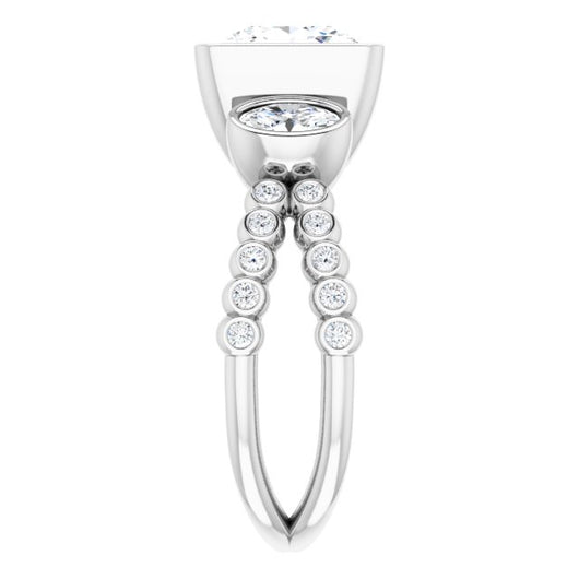 Center Stone Shape: Princess/Square Cut (as pictured). See this customizable ring set with other available center stone shapes here: customize setting.