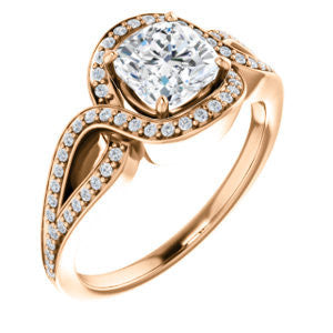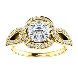 Cubic Zirconia Engagement Ring- The Taylor Ann (Customizable Cushion Cut Center with Twisting Halo & Wide Split-Pavé Band)