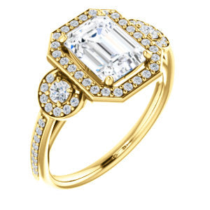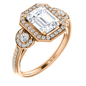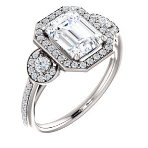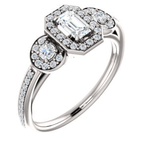 Center Stone Shape: Radiant Cut (as pictured with Emerald cut). See this customizable ring set with other available center stone shapes here: customize setting.