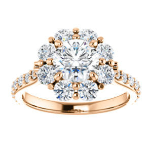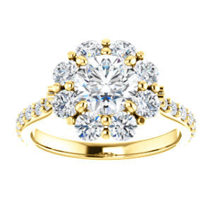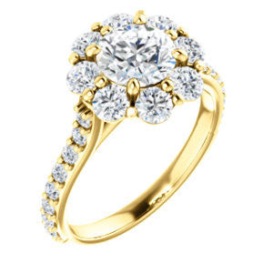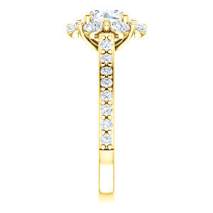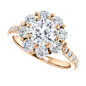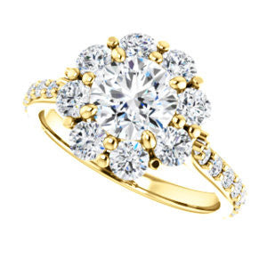 This flower-inspired, large-accented, cluster-halo engagement ring evokes the look and feel of a fresh bouquet. Lean down and breathe deep the scent of The Temeka’s prong-secured, precious-metal-enhanced petals of brilliance in a design created to wake up your senses and make your heart happy. Doesn’t that remind you of her? She’s the golden sunshine heating up your sparkling morning dew. She’s the strong breeze powering the movement of your day from start to success. She’s the promised evening rain to sing you to sleep and dreams rarely as exciting as a reality re-starting the cycle of your enviable life each morning with her.