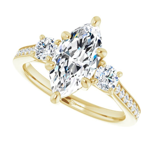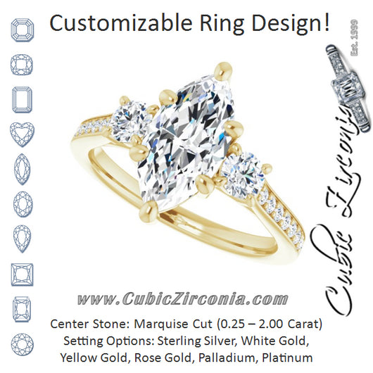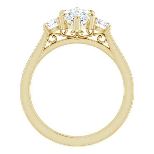 Center Stone Shape: Marquise Cut (as pictured). See this customizable ring set with other available center stone shapes here: customize setting.