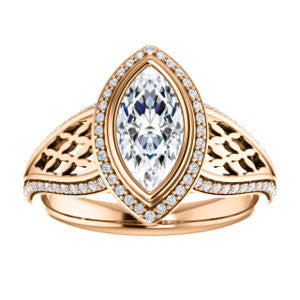 Cubic Zirconia Engagement Ring- The Timothea (Customizable Cathedral-Halo Marquise Cut Design with Three-sided Wide Pavé Artisan Band)