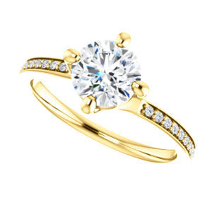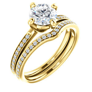Center Stone Shape: Round Cut (as pictured). See this customizable ring set with other available center stone shapes here: customize setting.