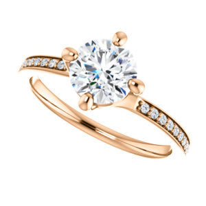 Cubic Zirconia Engagement Ring- The Valeria (Customizable Kite-setting Round Cut Center featuring Thin Pavé Band)