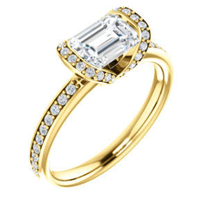Center Stone Shape: Radiant Cut (as pictured with Emerald cut). See this customizable ring set with other available center stone shapes here: customize setting.