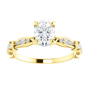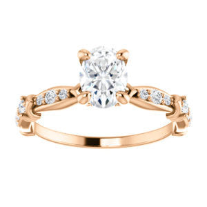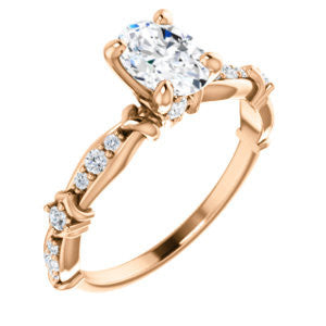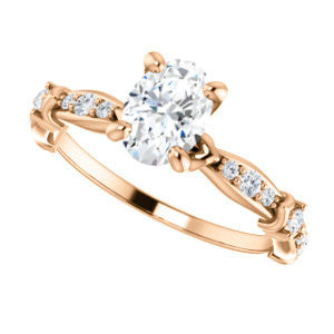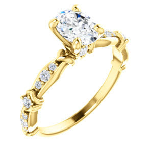 Cubic Zirconia Engagement Ring- The Willow (Customizable Oval Cut Artisan Design with 3 Kinds of Round Cut Accents)