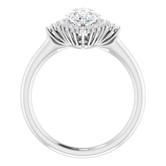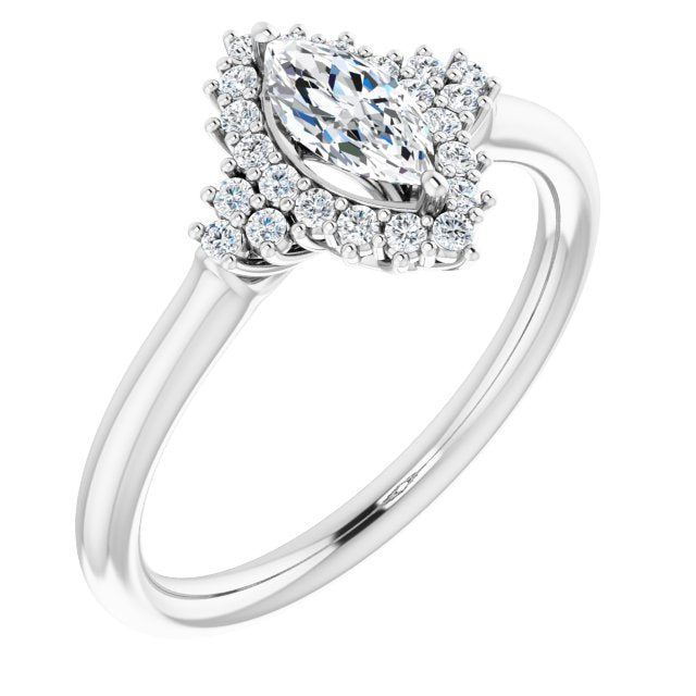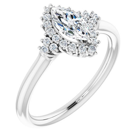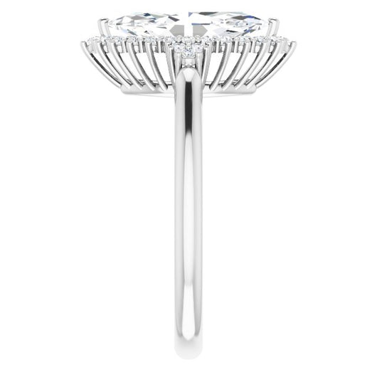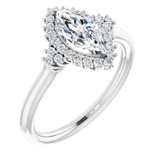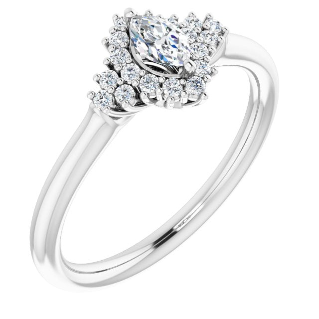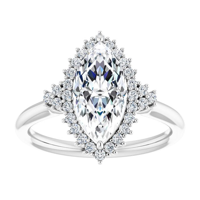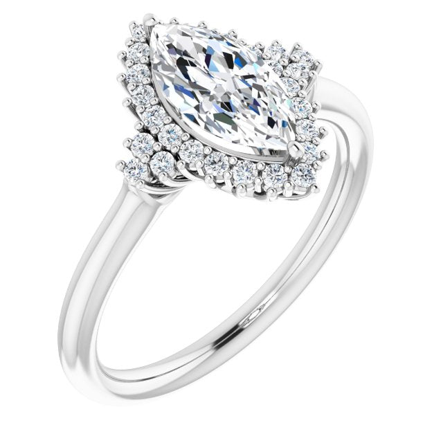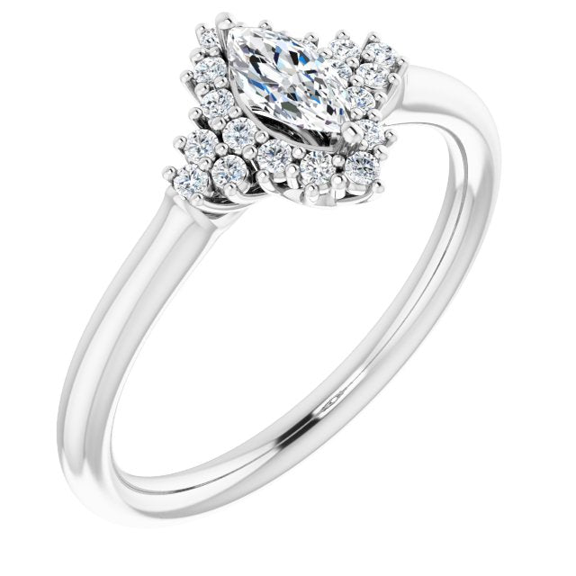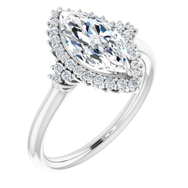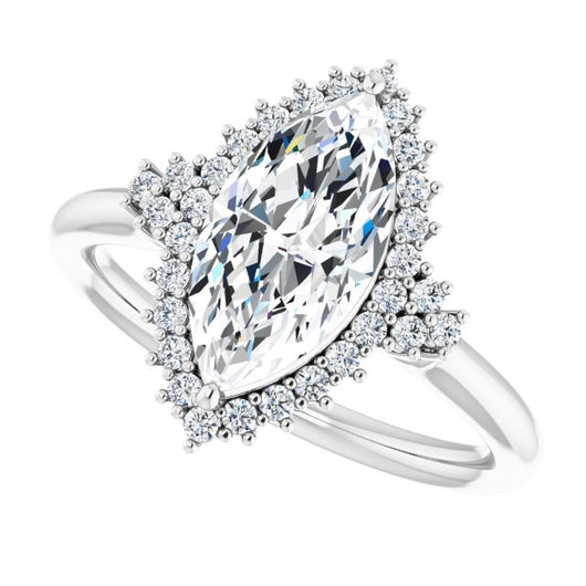 10K White Gold Customizable Marquise Cut Cathedral-Halo Design with Tri-Cluster Round Accents