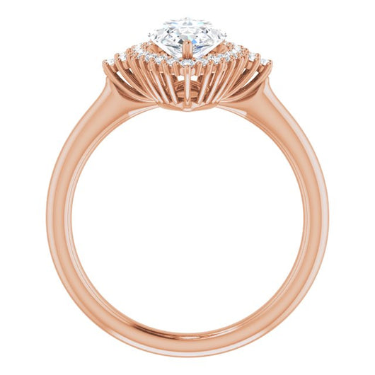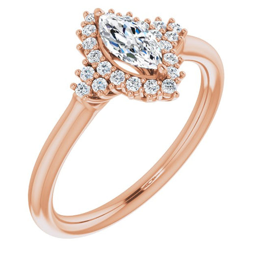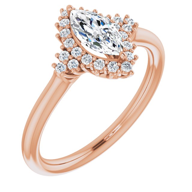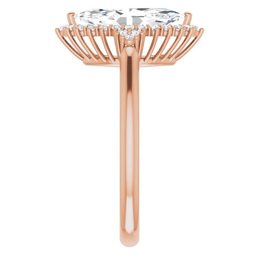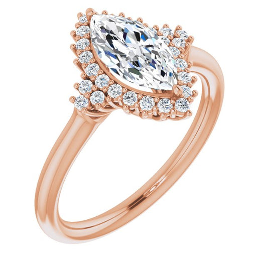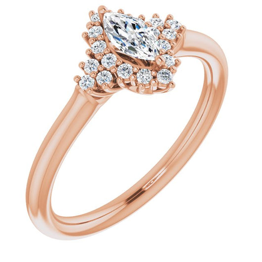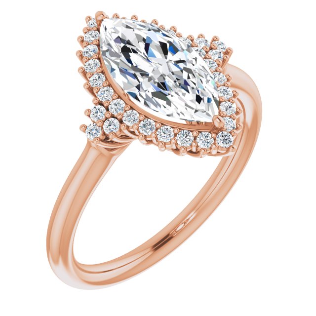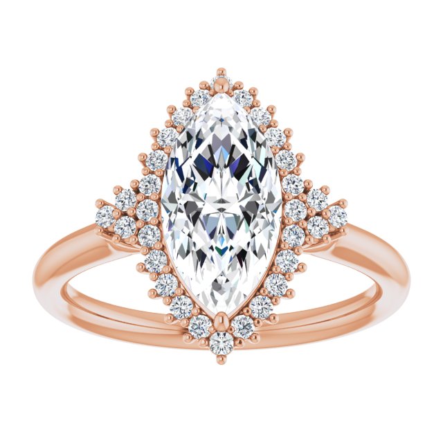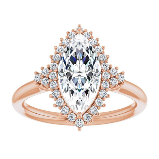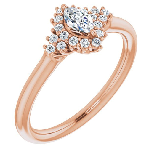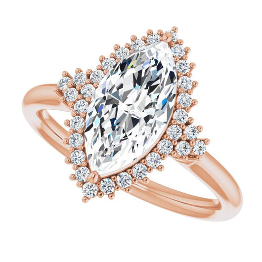 10K Rose Gold Customizable Marquise Cut Cathedral-Halo Design with Tri-Cluster Round Accents