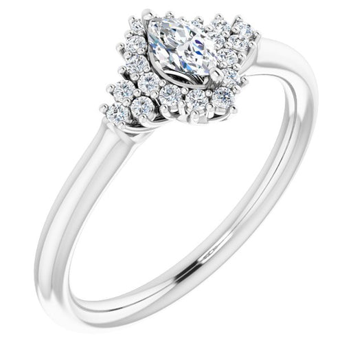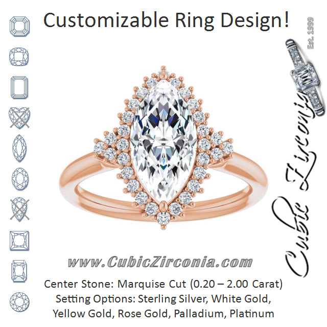 Cubic Zirconia Engagement Ring- The Winter (Customizable Marquise Cut Cathedral-Halo Design with Tri-Cluster Round Accents)