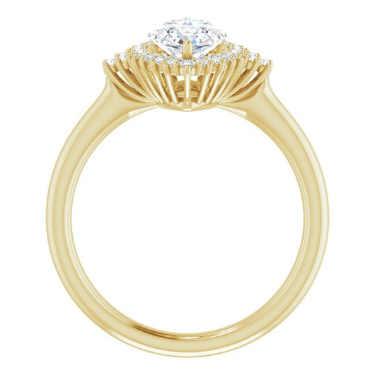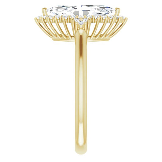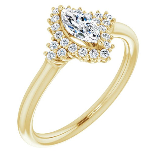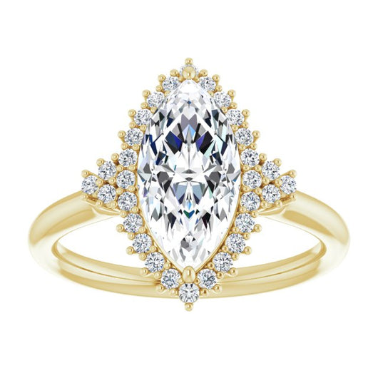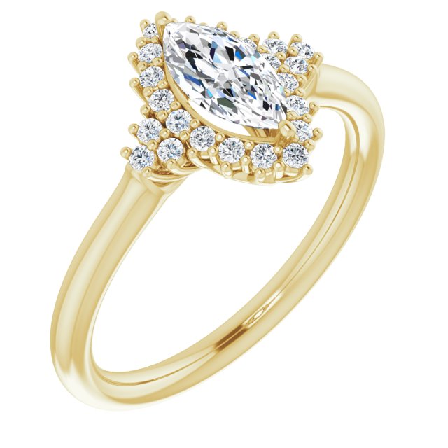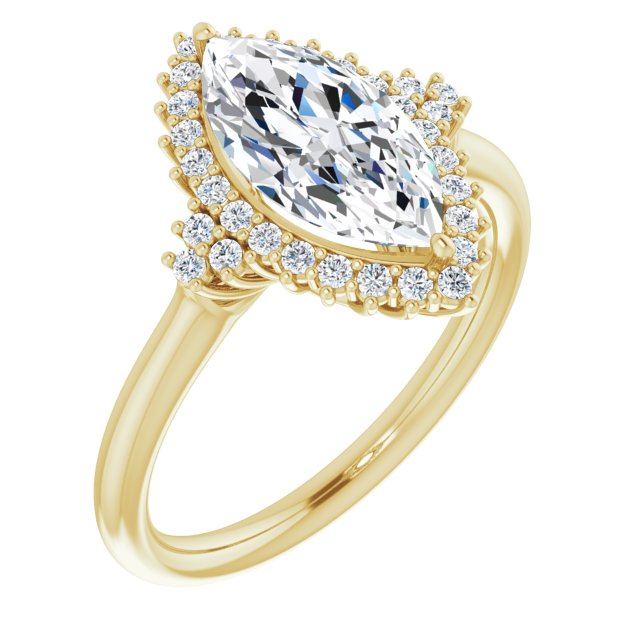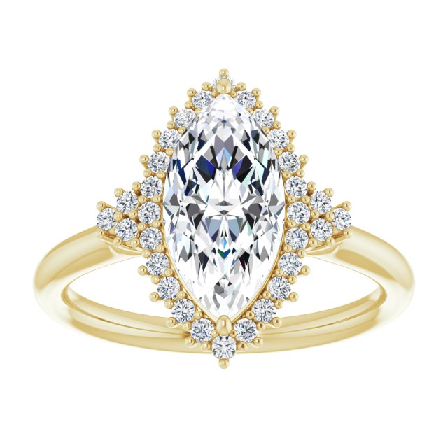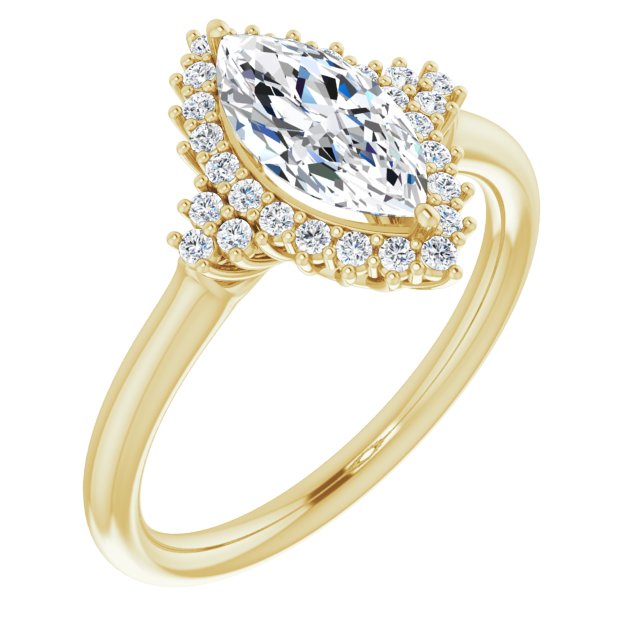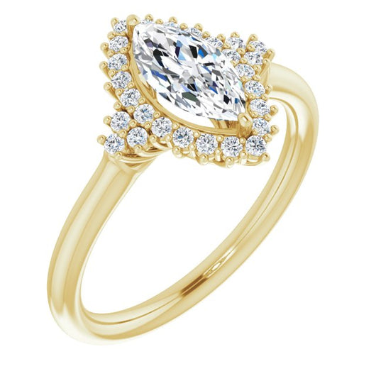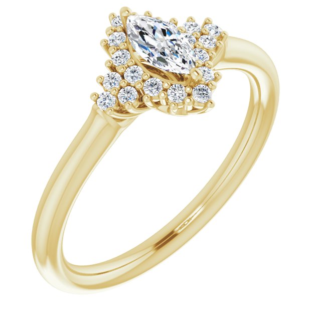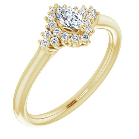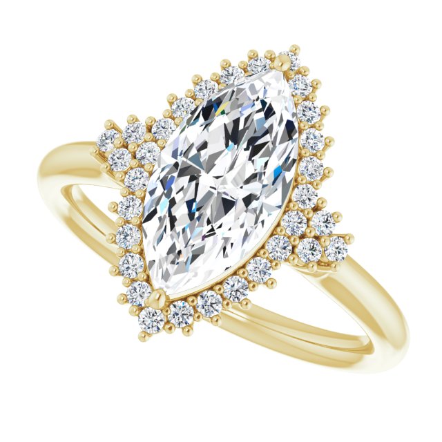 10K Yellow Gold Customizable Marquise Cut Cathedral-Halo Design with Tri-Cluster Round Accents