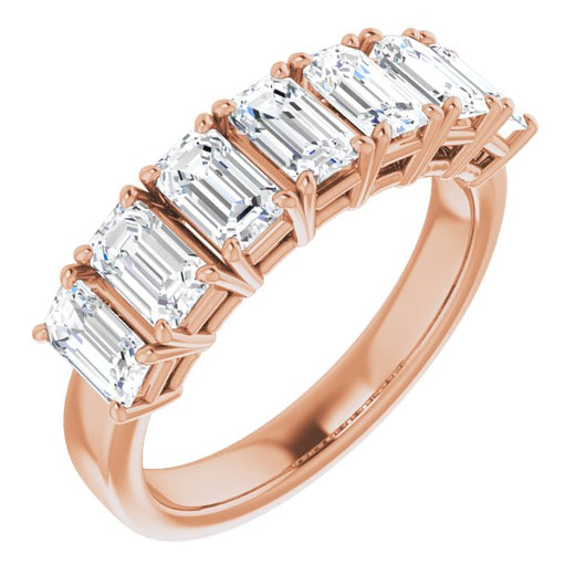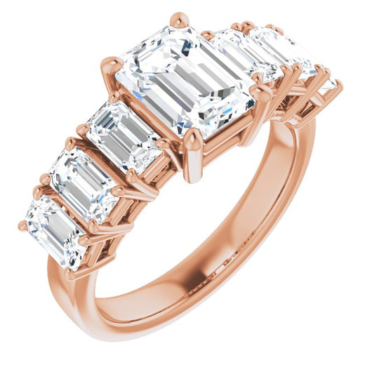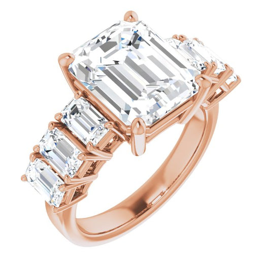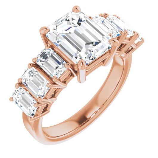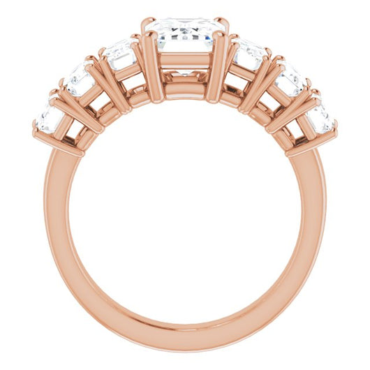 10K Rose Gold Customizable 7-stone Emerald/Radiant Cut Design with Large Round-Prong Side Stones