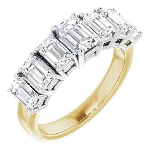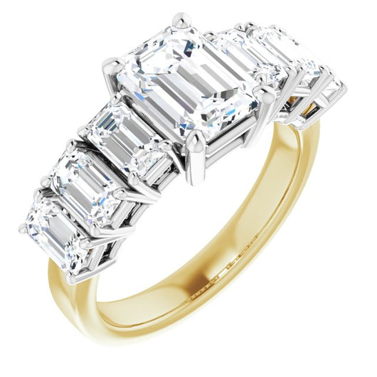 14K Yellow & White Gold Customizable 7-stone Emerald/Radiant Cut Design with Large Round-Prong Side Stones