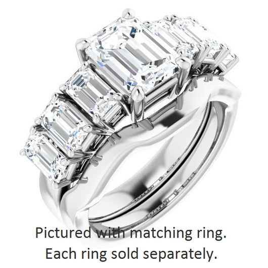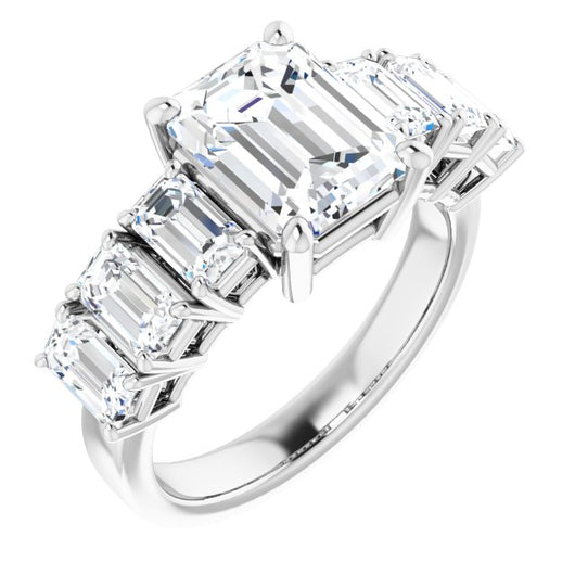 10K White Gold Customizable 7-stone Emerald/Radiant Cut Design with Large Round-Prong Side Stones