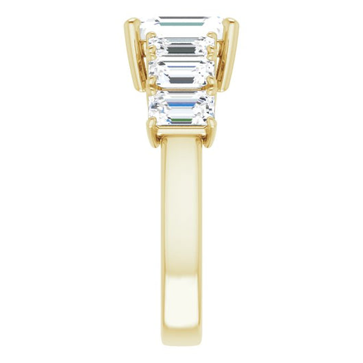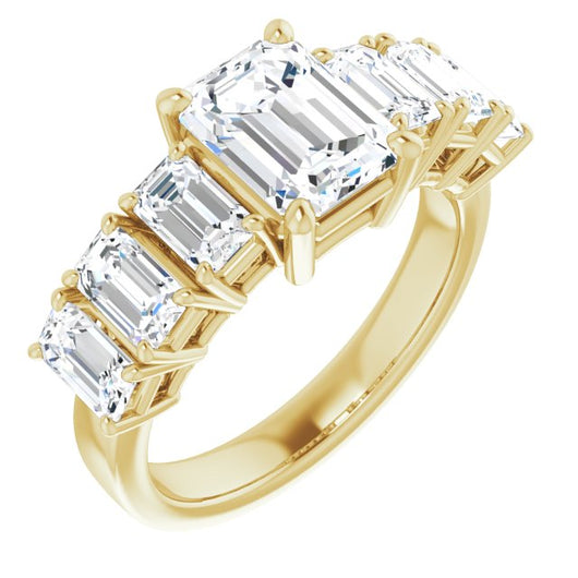 10K Yellow Gold Customizable 7-stone Emerald/Radiant Cut Design with Large Round-Prong Side Stones
