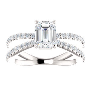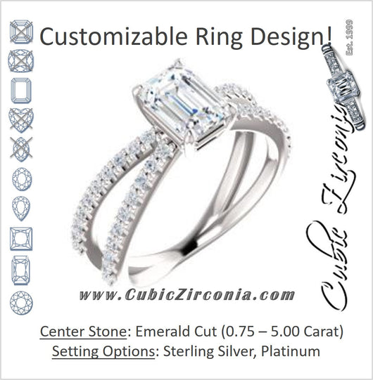 Cubic Zirconia Engagement Ring- The Yasmeen (Customizable Emerald Cut Style with Wide X-Split Pavé Band)