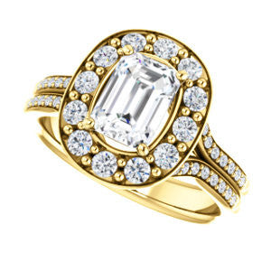 Cubic Zirconia Engagement Ring- The Yasmine (Customizable Radiant Cut Center with Oversized Halo Accents and Split-Pavé Band)