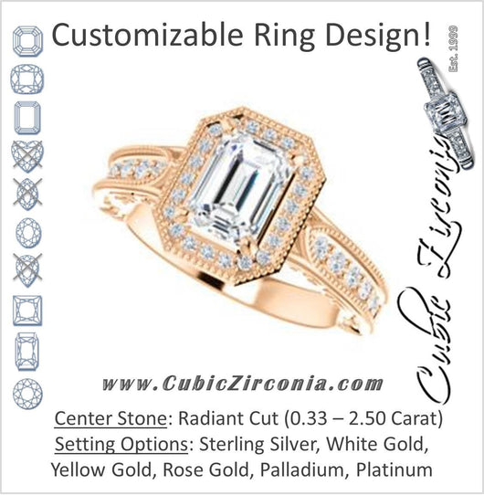 Cubic Zirconia Engagement Ring- The Zöe (Customizable Vintage Radiant Cut Greek Goddess Design)