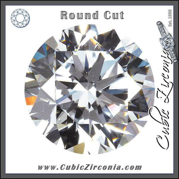 The Round Cut – the traditional round cut stone is by far the most common center stone shape for rings (and the most popular shape found in most other kinds of jewelry for that matter). The round cut stone has brilliant-cut facets and a shape that is mathematically optimized for maximum light reflection and refraction. The ideal cut round diamond is almost universally considered "perfect", and has 58 facets cut to exact proportions and placed at optimal angles to create an ideal balance between light reflection and refraction. So that's exactly what we do when manufacturing our 5A diamond-quality cubic zirconia stones, too! These factors combine to enhance the round cut stone's brilliance and fire. In our experience, more than half of customers prefer round cut stones (this is even more true with respect to solitaire rings). Some of these round-shape fans feel the circle is associated with the concept of forever. The round cut is symmetrical, with equal length and width.