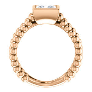 You just received an invitation to Count Oakmont’s housewarming party in Edinburgh. Do you go with formal? Semi-formal? The invite says “black tie optional”. So which option do you choose for HIM, since God knows he can’t be relied upon to make that call?! You’ll have one less concern in a life of making decisions for him the day he made one great decision to marry you, because he gave you The Maria Leeslii, a Princess Cut solitaire engagement ring that is casual panache at its finest, with maybe just a hint of ostentation in her beaded metal beauty. And now you know exactly what you’ll be wearing, and best of all most of them haven’t even seen you since he proposed. A boldly-placed, bezel-set sparkler of a 5A diamond-quality cubic zirconia center stone is enhanced by a split-band design looking like a double strand of beads twisting ‘round the finger to catch the eye and pull it upwards to focus on center solitaire.