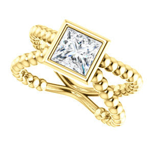 Cubic Zirconia Engagement Ring- The Maria Leeslii (Customizable Bezel-set Princess Cut Solitaire with Wide Beaded-Metal Split-Band)